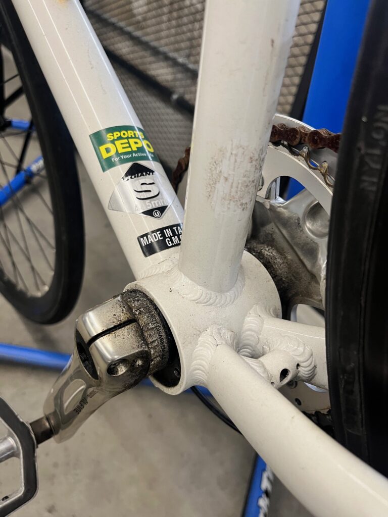 スポーツデポのステッカーも見えますね!前のオーナーさんも初めてのスポーツ自転車だったのではないでしょうか。