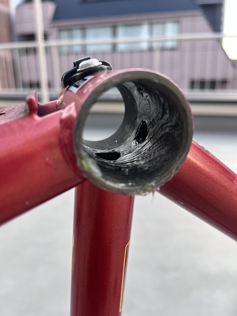 意外に侮れない怖いところ。BBのネジ山が潰れたらフレームも終了です。注意しましょう。